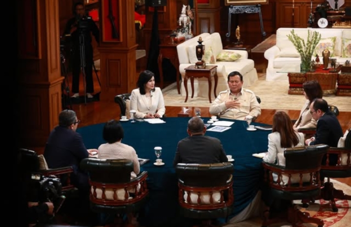 Dalam wawancara eksklusif yang diadakan pada hari Minggu, 6 April 2025 di Hambalang, Bogor, Presiden Prabowo menyempatkan diri berdiskusi secara langsung dengan tujuh jurnalis senior dari berbagai grup media nasional.