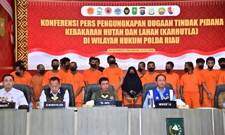 JAKARTA, FAKTANASIONAL.NET – Kepala Badan Nasional Penanggulangan Bencana (BNPB) Letjen TNI Dr. Suharyanto, S. Sos., M.M., mengungkap fakta telah ada penetapan tersangka dari rangkaian kejadian kebakaran hutan dan lahan (karhutla) yang terjadi sepanjang Januari sampai Juli 2025 di wilayah Provinsi Riau. Hal itu dikatakan saat melakukan Rapat Koordinasi Penanganan Kebakaran Hutan dan Lahan di Gedung Serindit, Kota Pekanbaru, Provinsi Riau pada Selasa (22/7).