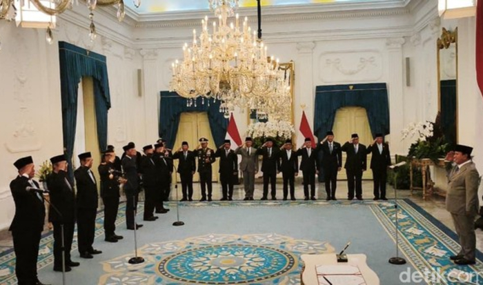 Upacara pelantikan berlangsung di Ruang Kredensial Istana Merdeka sekitar pukul 16.00 WIB dan diawali dengan prosesi menyanyikan Lagu Kebangsaan Indonesia Raya. Sepuluh tokoh yang dilantik tampak berbaris rapi menghadap Presiden sebelum pengambilan sumpah jabatan dimulai.